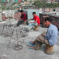 Die verwendete Wolle wird in selbstgebauten Öfen eingefärbt, die mit Kerosin geheizt werden und nicht mit Holz aus dem gefährdeten Restbestand des Himalaya-Gebirges. Durch sorgfältiges und korrektes Einfärben der Wolle entfällt eine chemische Nachbehandlung der Teppiche. Wir verwenden je nach Wunsch nepalesische oder neuseeländische Wolle. Pro m2 werden nach Abhängigkeit von Florhöhe und Knopfdichte 4 - 6 kg Wolle verarbeitet.
